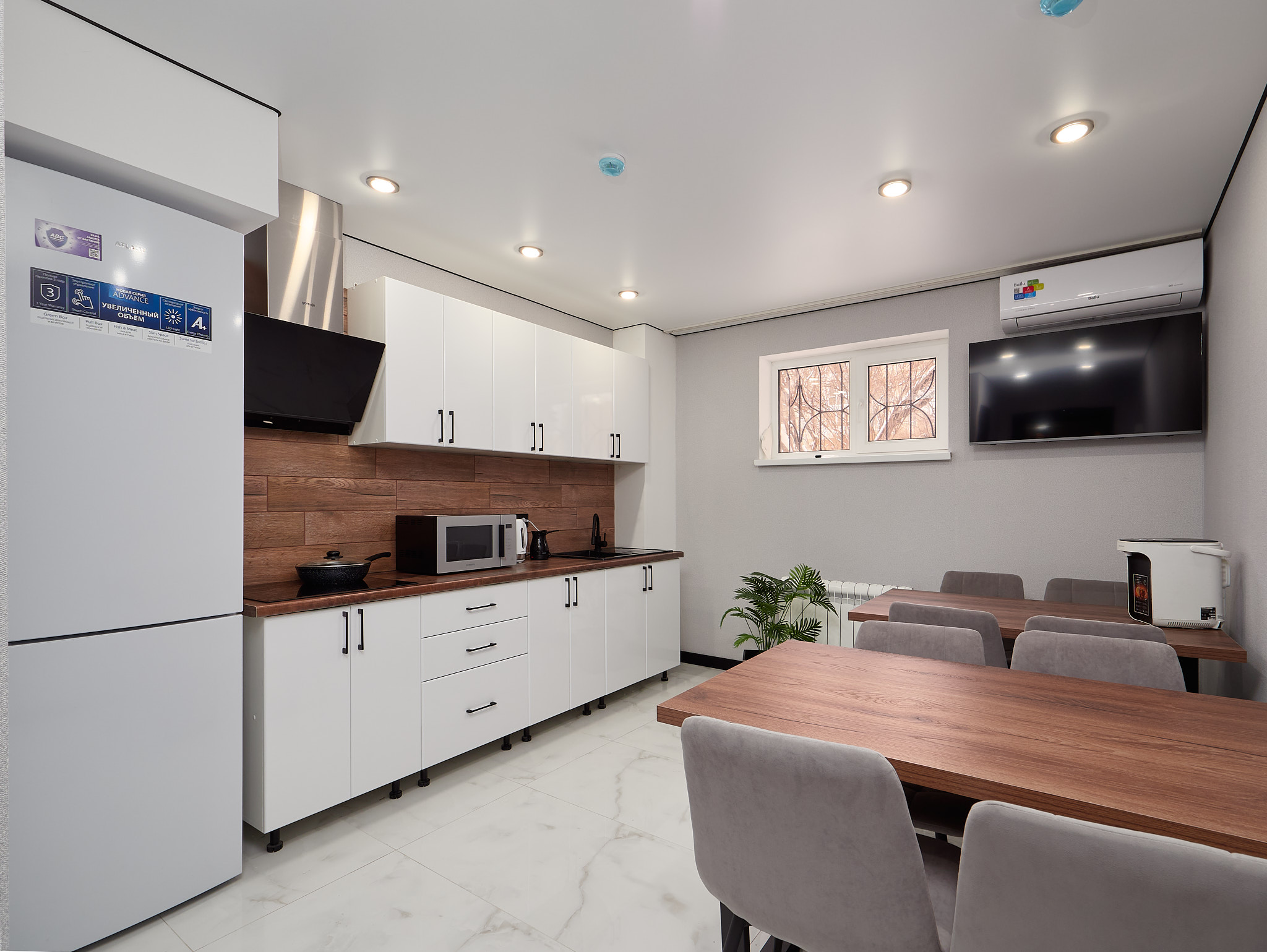 Приготовить еду можно на общей кухне. В качестве дополнительных услуг, отель предоставляет аренду детских кроваток и стульчиков, а также глажку и стирку белья.