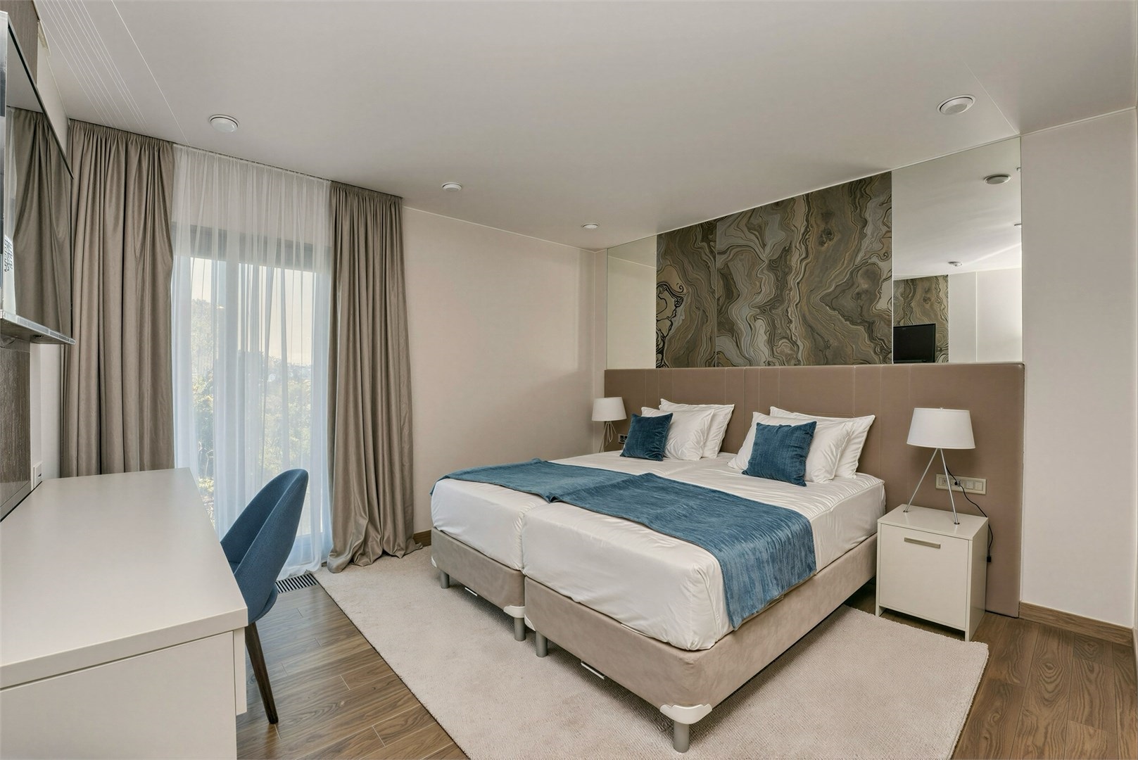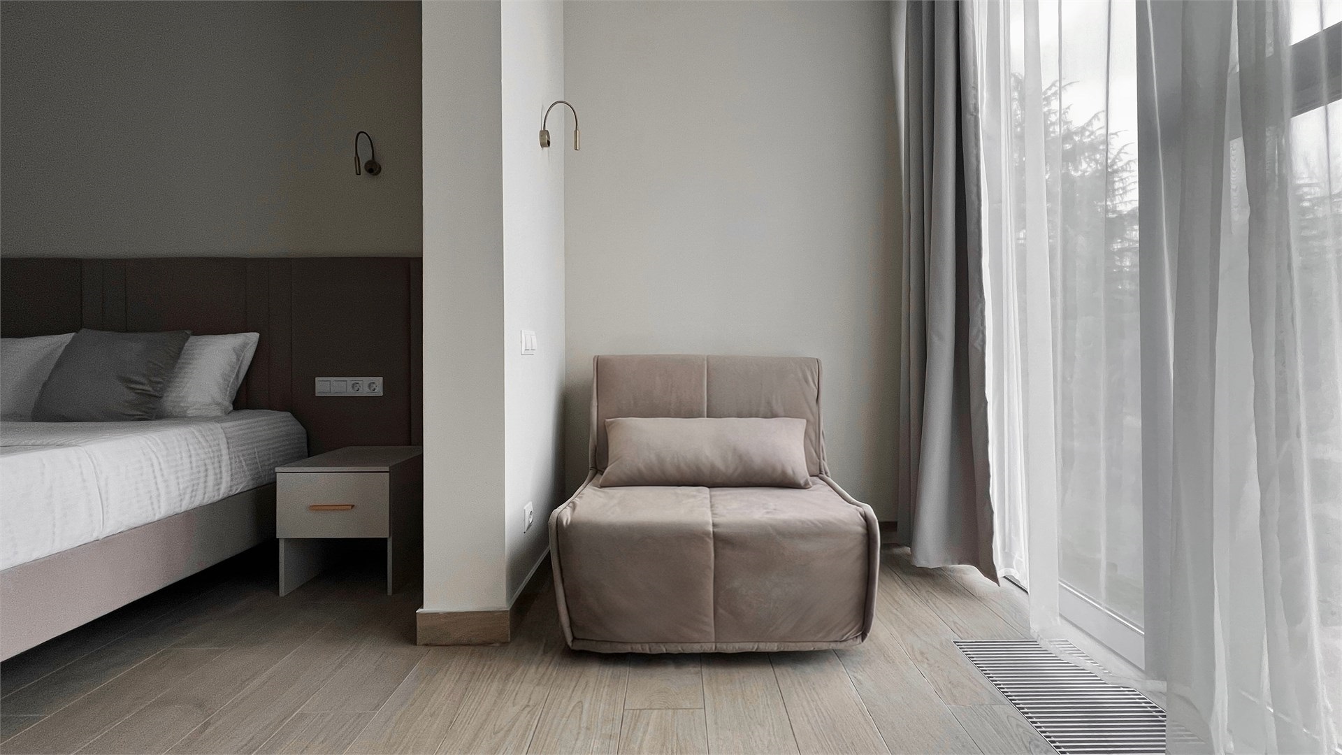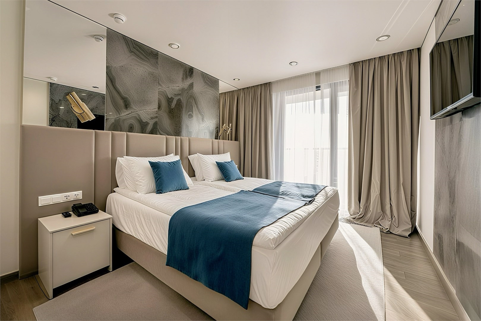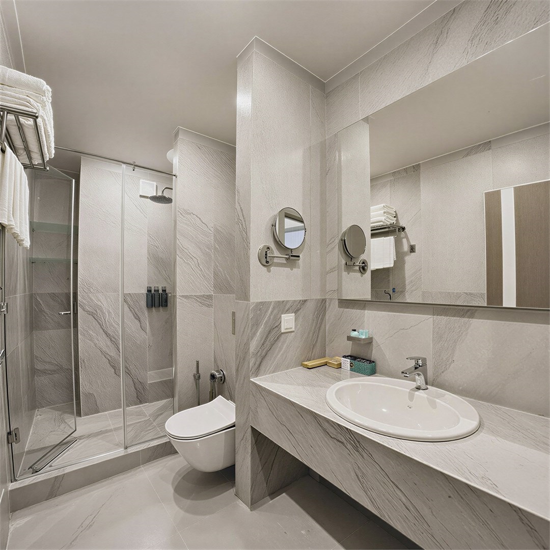 Номерной фонд представлен разнообразными вариантами: от уютных стандартных номеров без балкона до двухместных с живописным балконом и просторных двухкомнатных номеров, рассчитанных на размещение семьи из четырех человек. Каждый из них продуман до мелочей, чтобы гости чувствовали себя желанными и окруженными заботой.