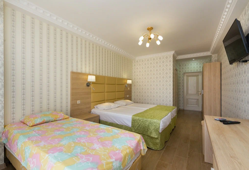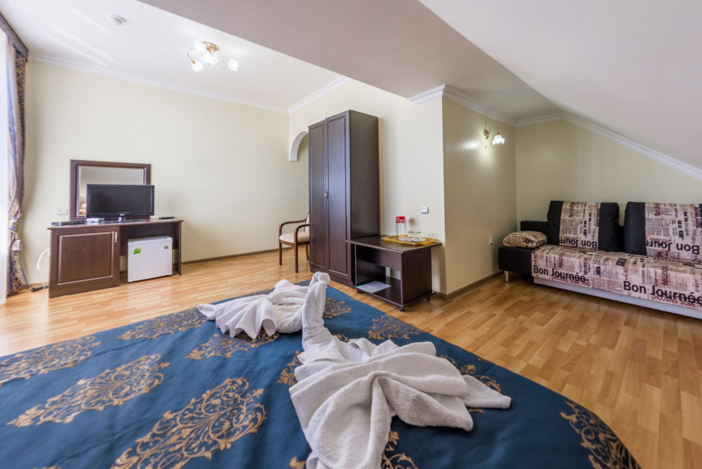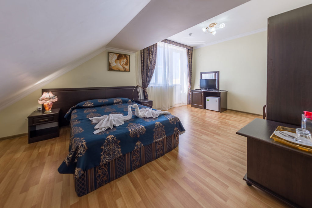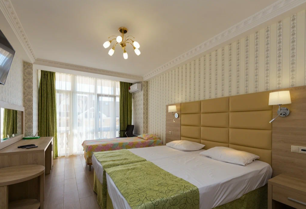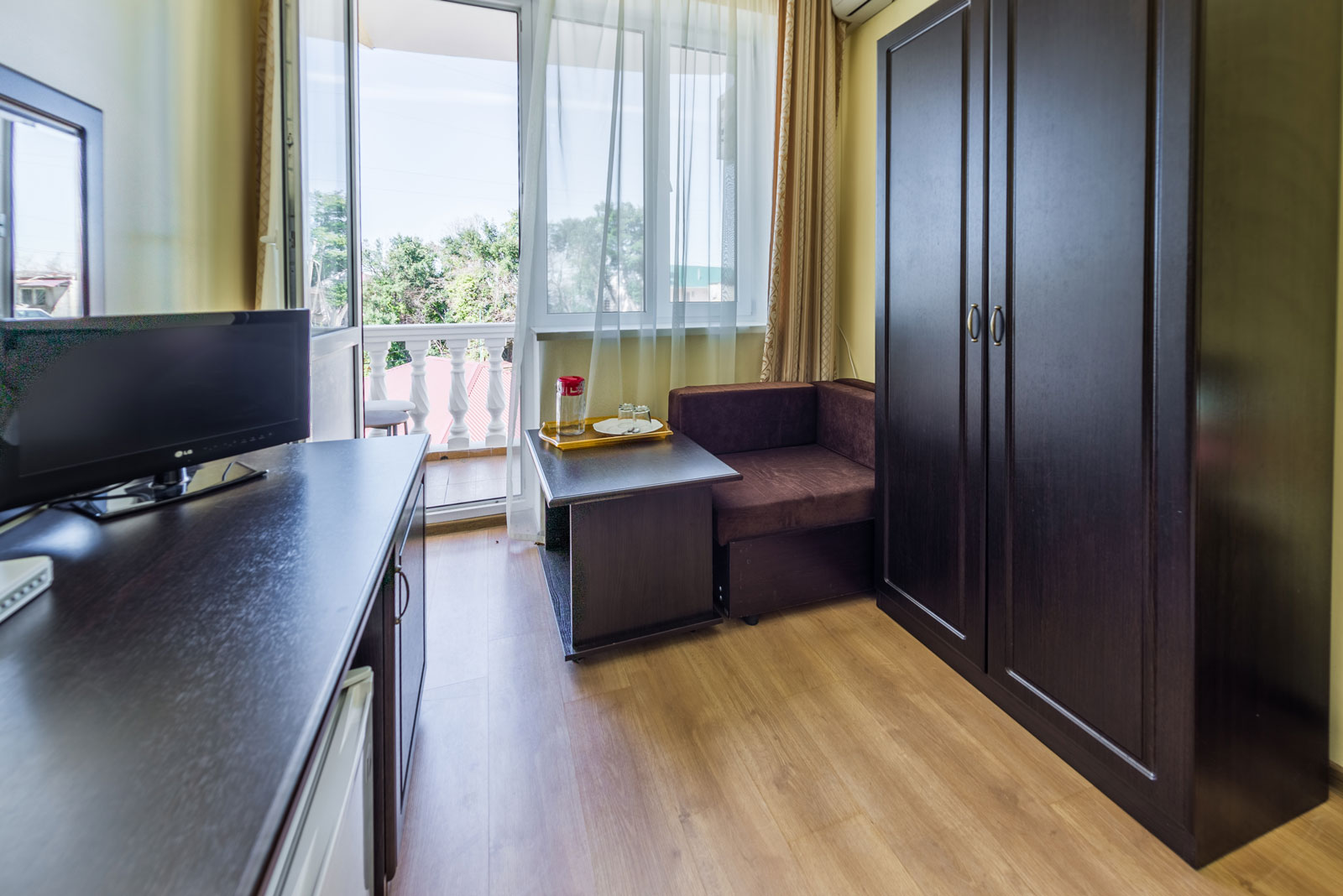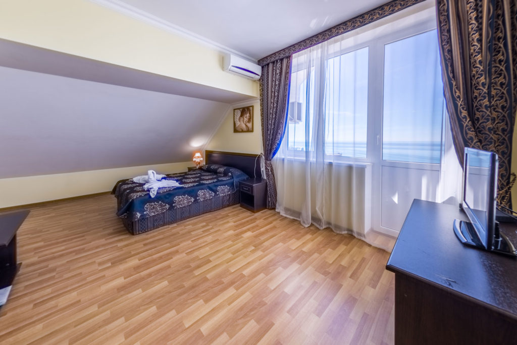 - Люкс. 2-местный 2-комнатный с видом на море. Площадь: 40. Осн. мест: 2. Доп. мест: 1.