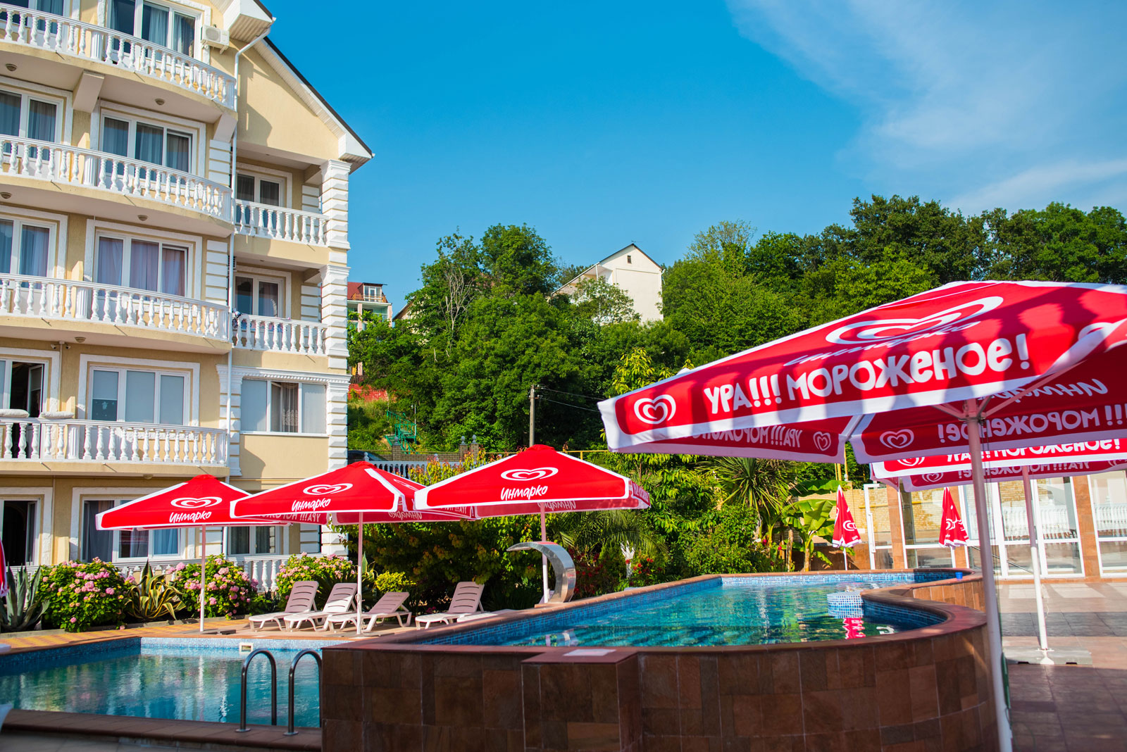 Наслаждаться Черным морем гости «Арины Лоо» в Сочи могут без каких-либо ограничений. На расстоянии 450 метров от отеля находится галечный пляж.