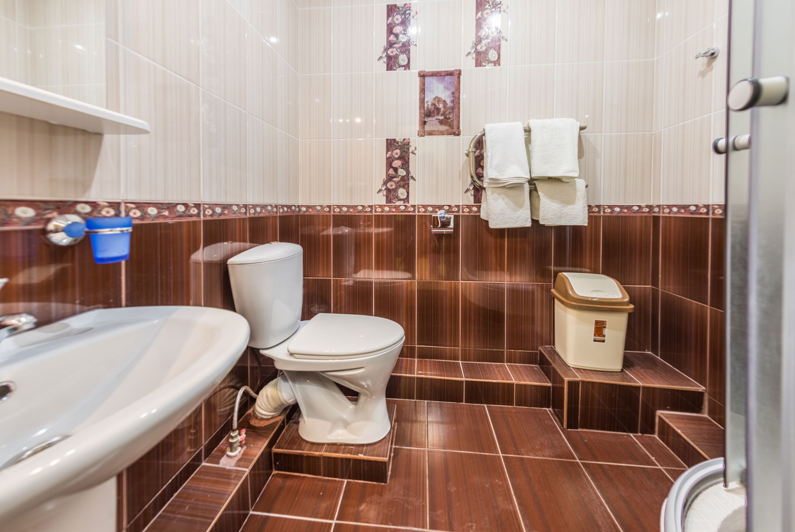 с душевой кабиной: ; туалетные принадлежности: ; фен: ;