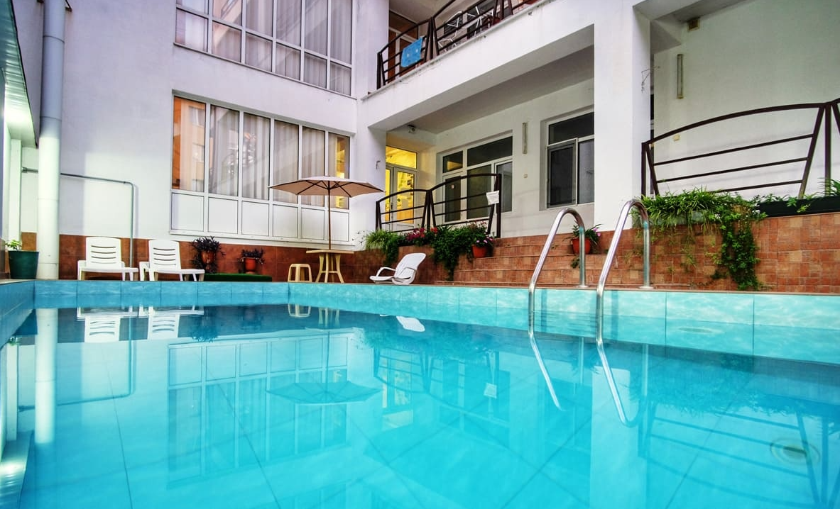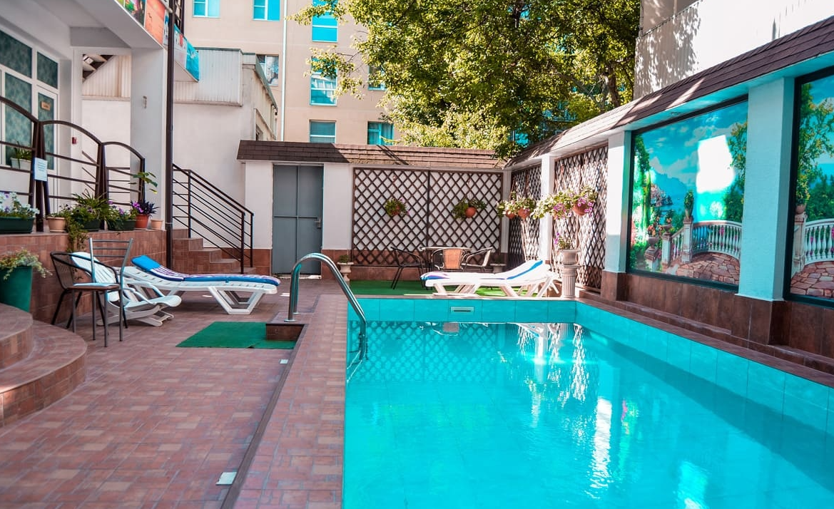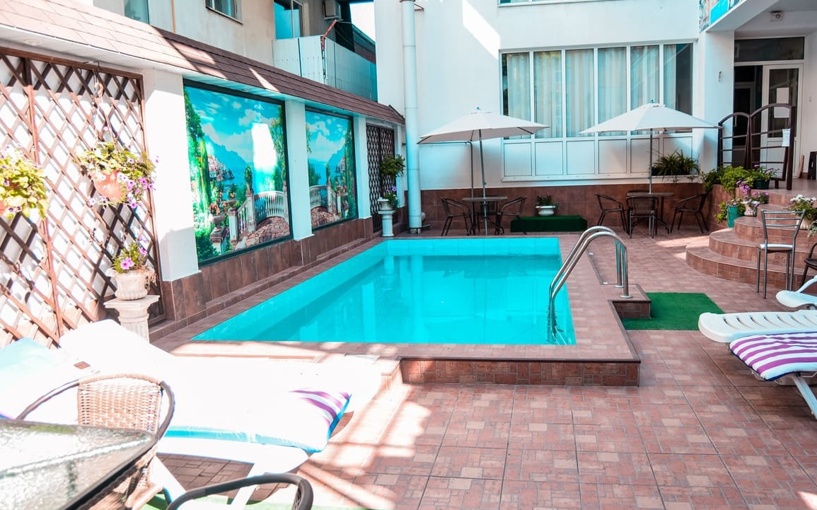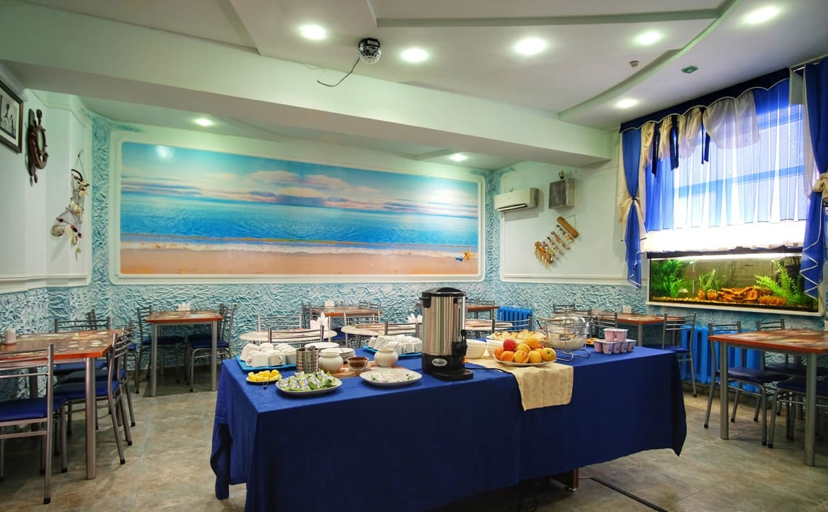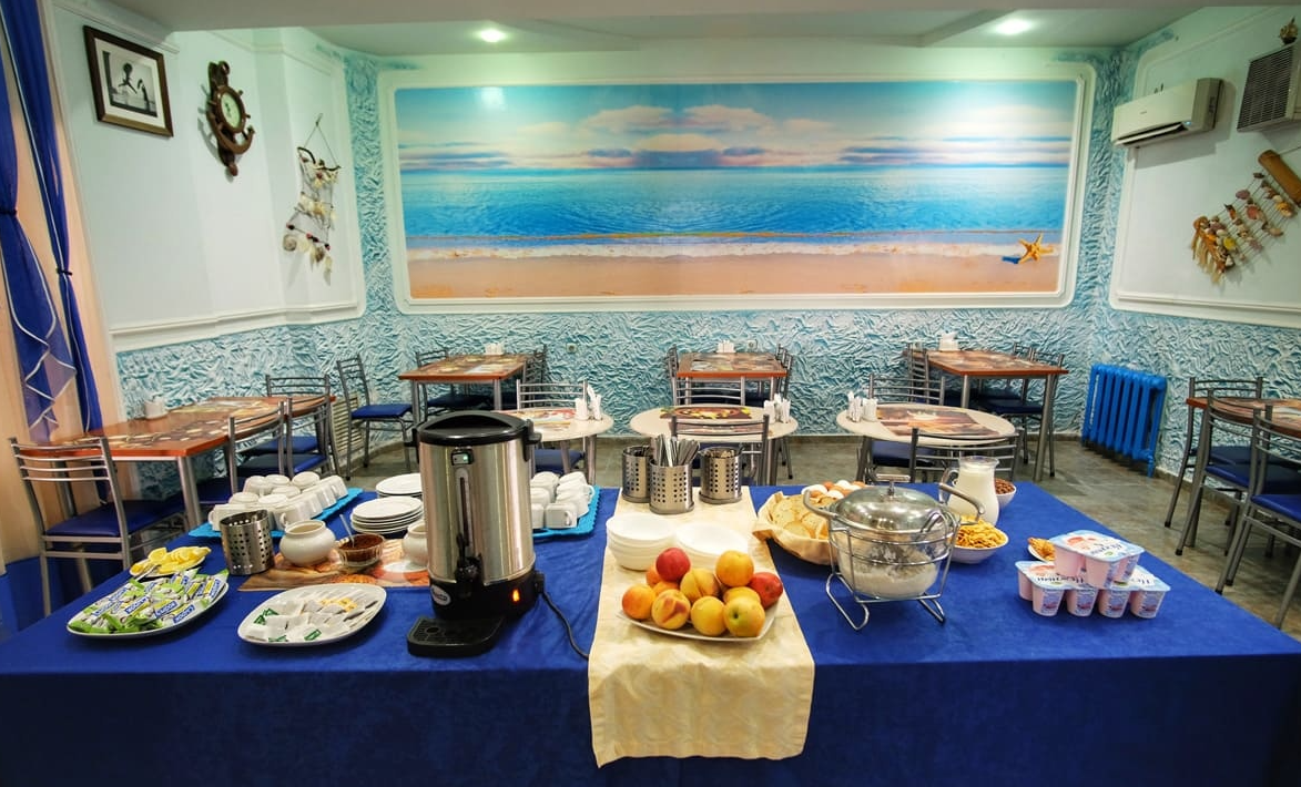 В отеле все летнее время и до конца сентября целый день работает кафе «Континент», специализирующееся на блюдах восточно-европейской кухни. К услугам гостей отеля – открытый бассейн с пресной водой, площадью 16 кв. м, с удобной релакс-зоной. Есть финская сауна с мини-бассейном.