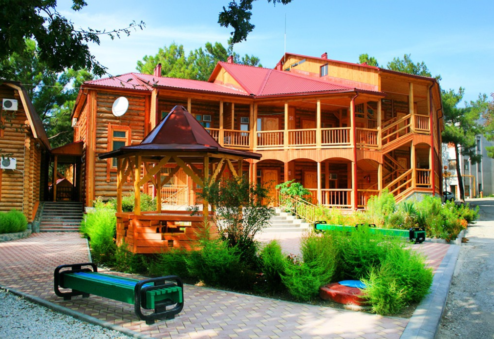 Комплекс занимает благоустроенную закрытую территорию, на которой разместился двухэтажный деревянный коттедж с просторными террасами и номерами. Номера, рассчитанные на разное число гостей, оснащены все необходимым: везде есть индивидуальный санузел, кондиционер, а также телевизор и холодильник.
