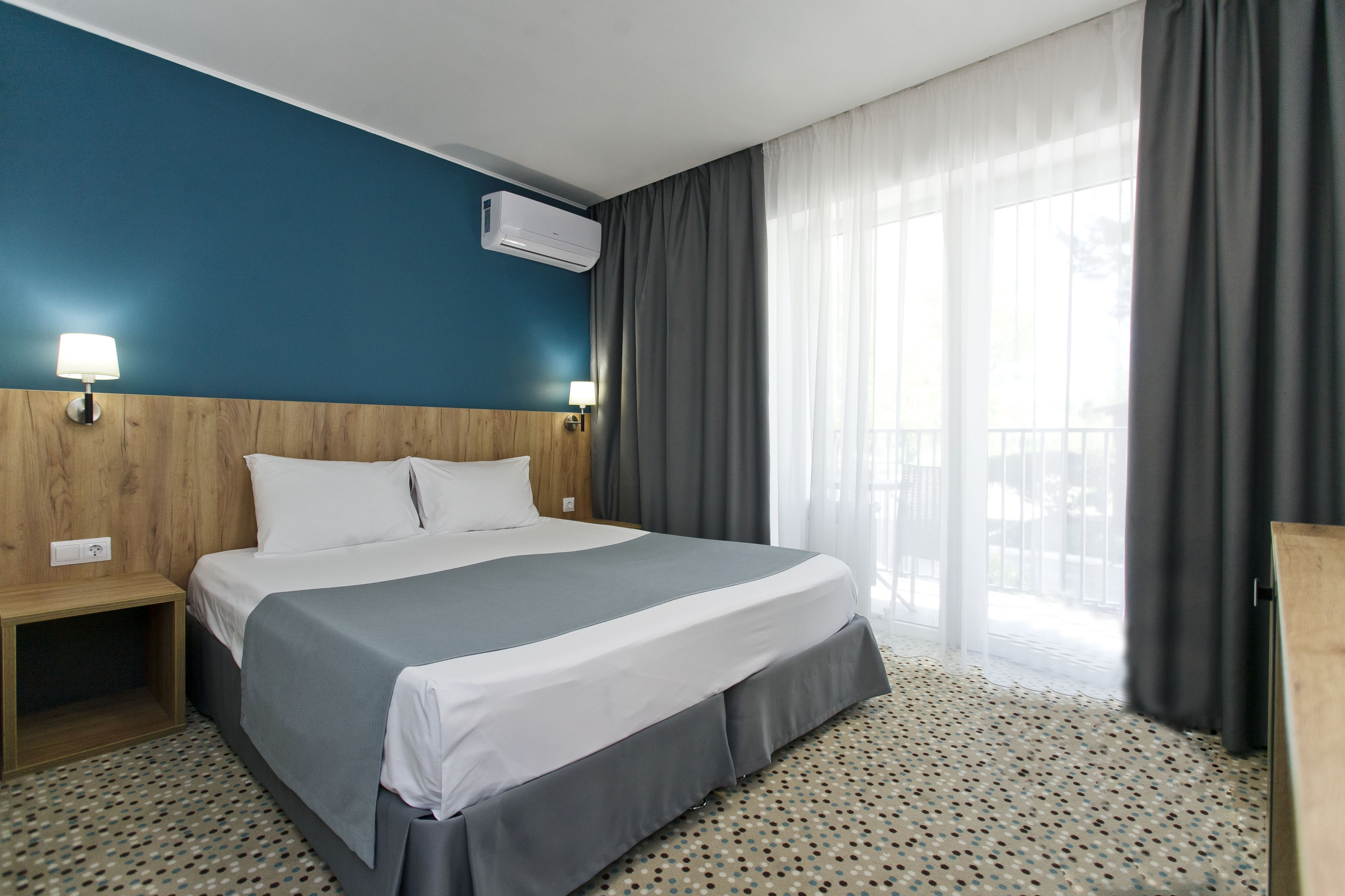 Жилой фонд отеля, способный одновременно вместить 350 человек, образован тремя 4-этажными корпусами. Номера в них имеют разные категории от «люкса» до «эконома», разное количество комнат и мест. Каждый из этих номеров обеспечен автономным санузлом с ванной или душем и набором необходимой бытовой техники: телевизором, холодильником и сплит- системой (в бюджетных номерах – вентилятором). Wi-Fi доступен в лобби и на территории.