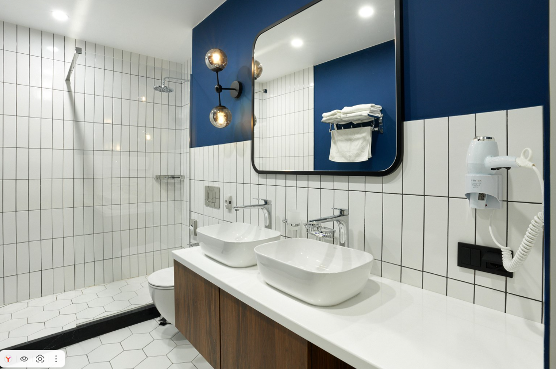 с душем или ванной: ; туалетные принадлежности: ; фен: ;