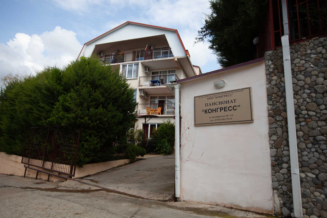 Отель «Конгресс» находится в курортной зоне посёлка Лоо, район Горный воздух, Сочи, недалеко от дельфинария и аквапарка «АкваЛоо». По пути к морю много магазинов, торговых точек, и других объектов курортной инфраструктуры. Морской берег и пляж – в 350 метрах. До аэропорта около 50 км, до железнодорожного вокзала – 3 км, до остановки автобуса – 200 м, до остановки электричек 350 м.