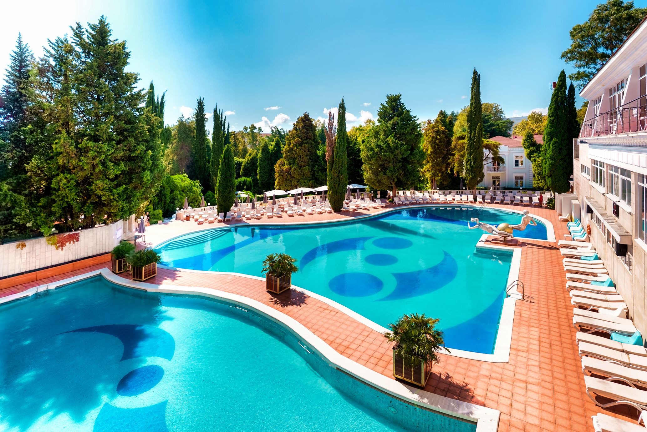 К услугам гостей собственный оборудованный пляж протяженностью 380 м, открытый и закрытый бассейны с морской водой, рестораны и бары, СПА-центр, тренажерный зал, теннисные корты, салон красоты, библиотека, экскурсионное бюро и сувенирные магазины, а для детей детский игровой комплекс на набережной и Студия детского творчества «Улыбка».
