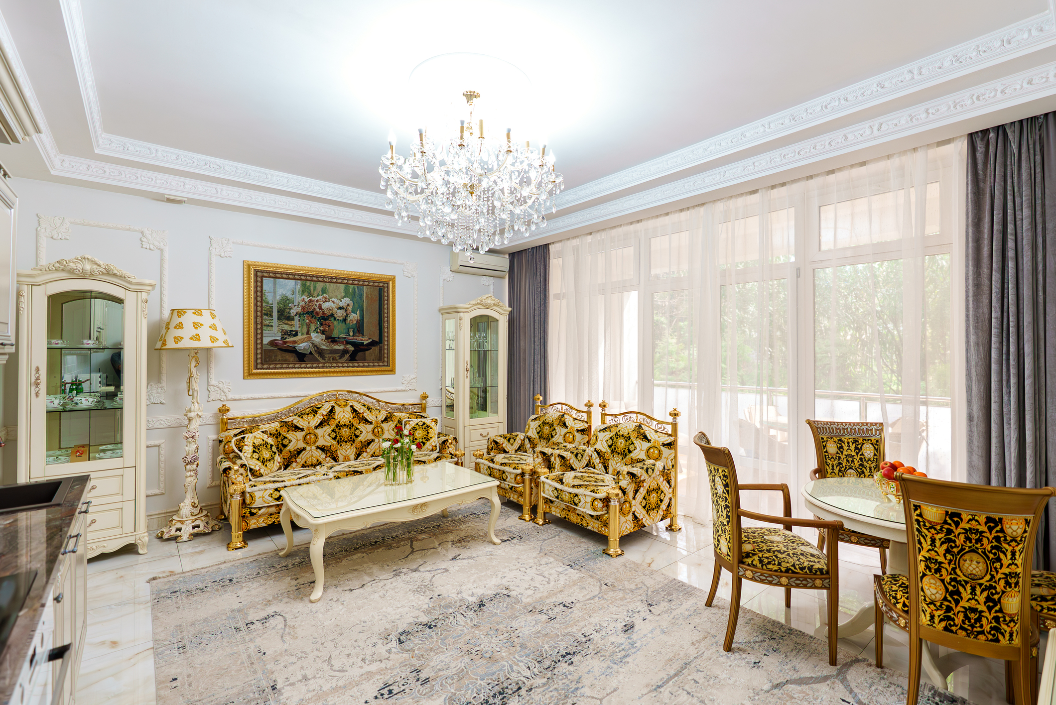 набор посуды; сейф; система общего кондиционирования; телевизор; телефон; холодильник; электрочайник;
