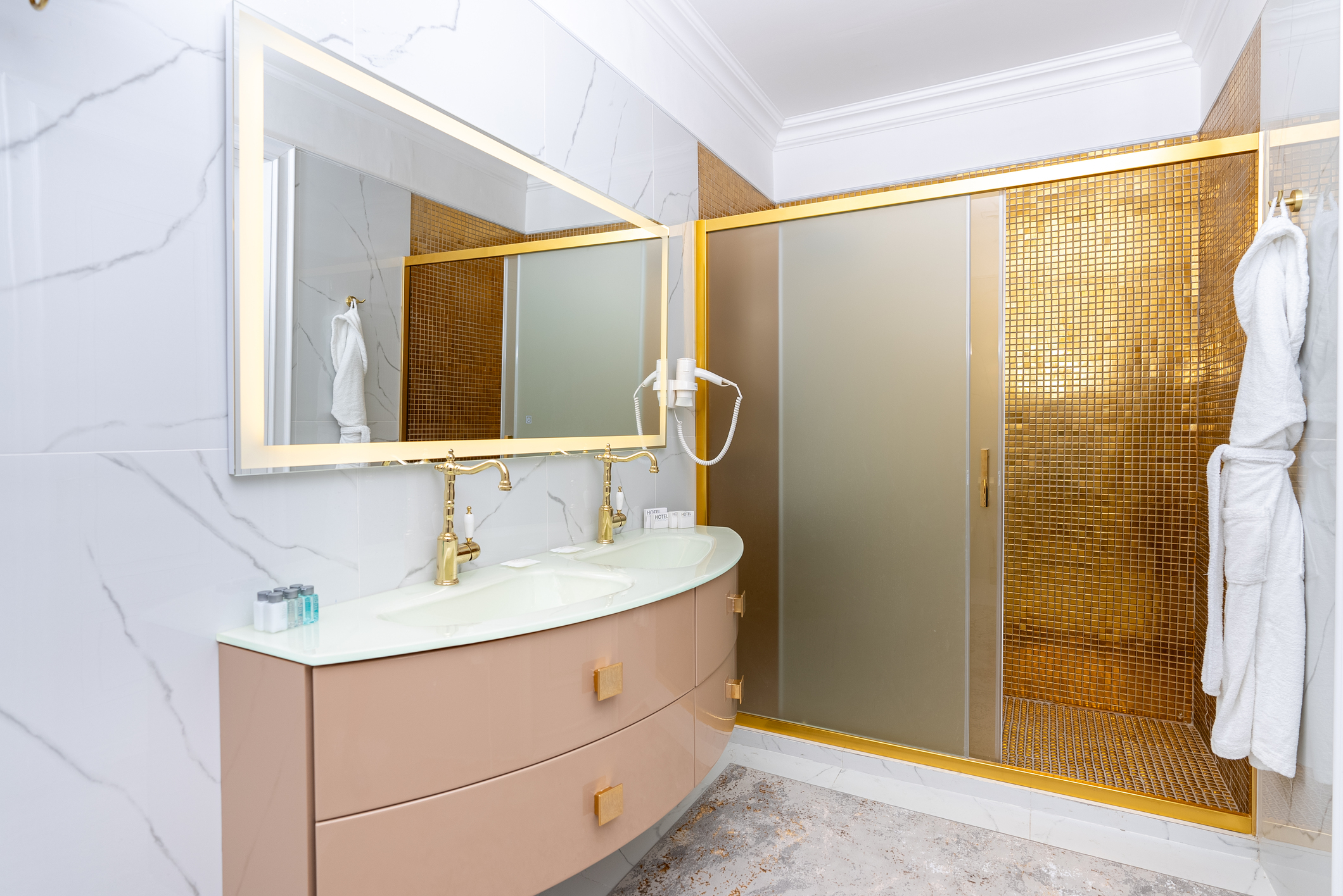 биде; с джакузи; с душевой кабиной; фен;