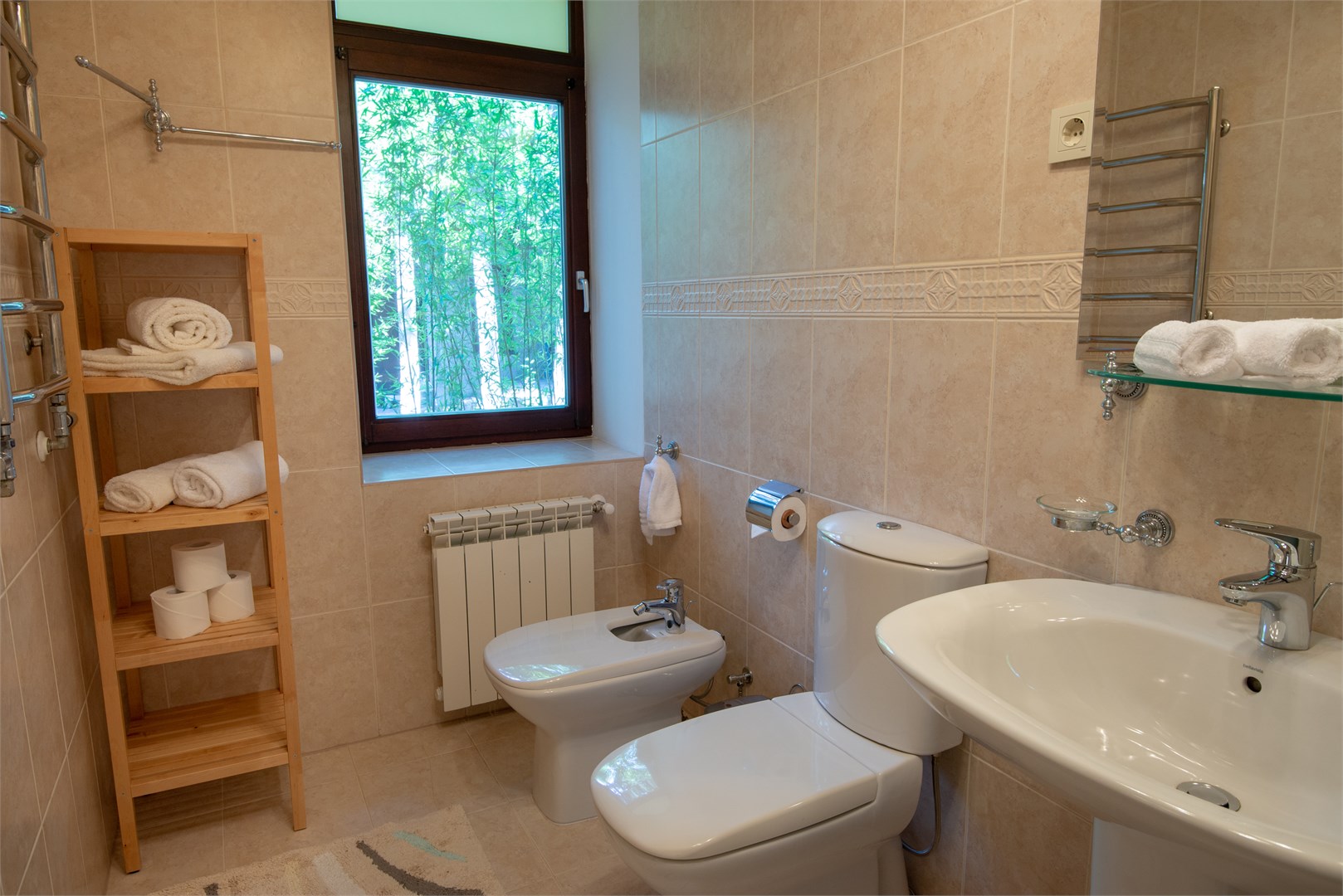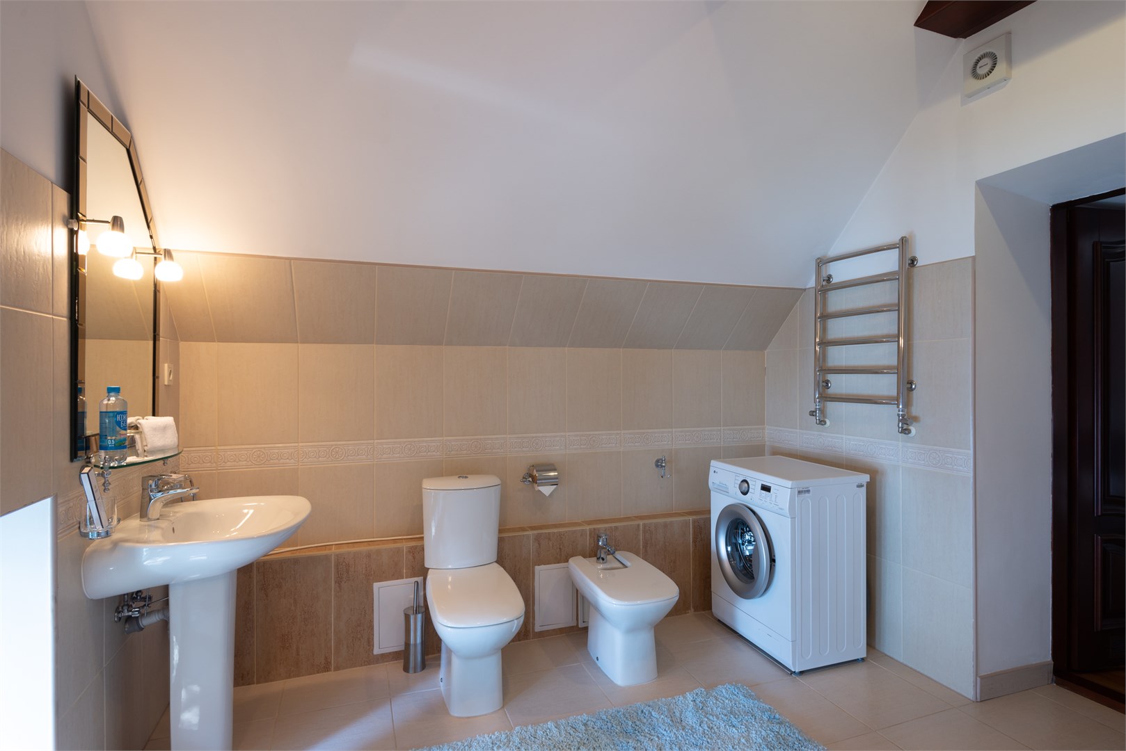 биде: ; с душем: ; тапочки: ; туалетные принадлежности: ; фен: ; халат: ;