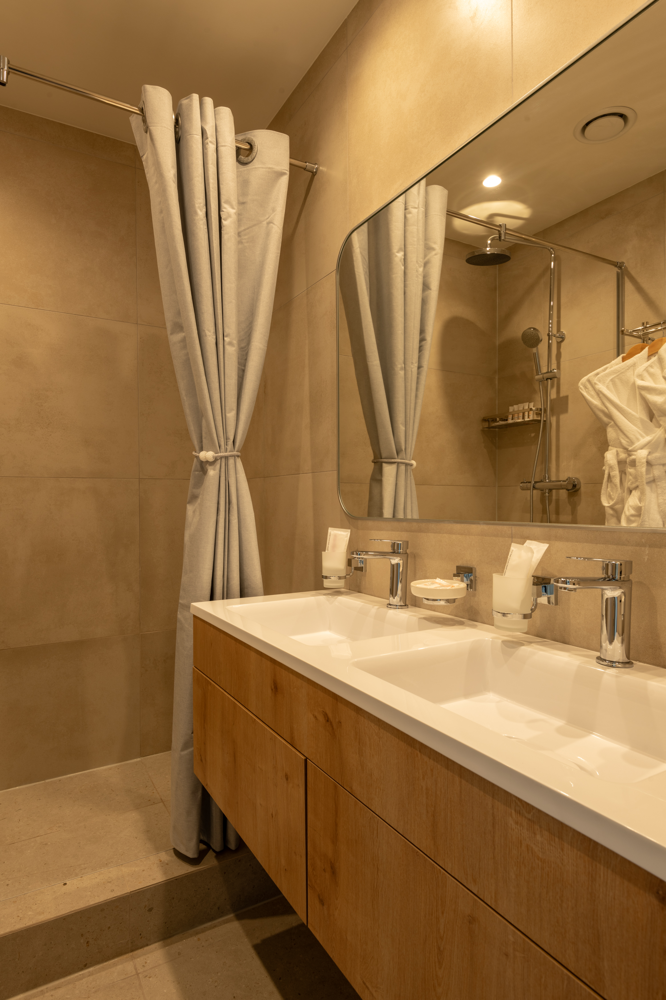 с ванной или душевой кабиной: ; тапочки: ; туалетные принадлежности: ; фен: ; халат: ;