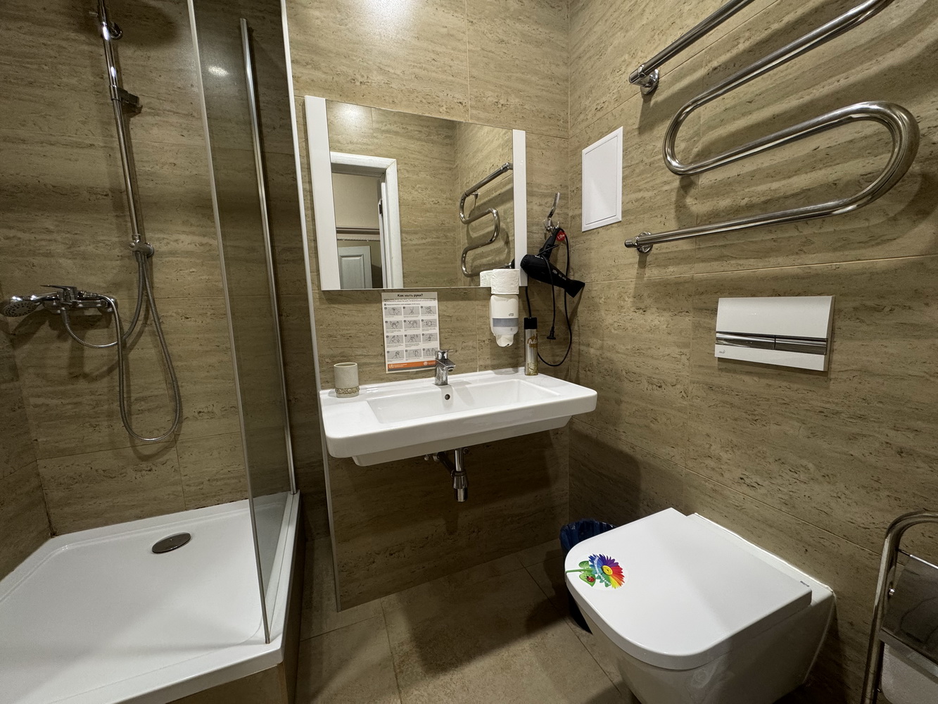 с ванной/душем: ; туалетные принадлежности: ; фен: ;