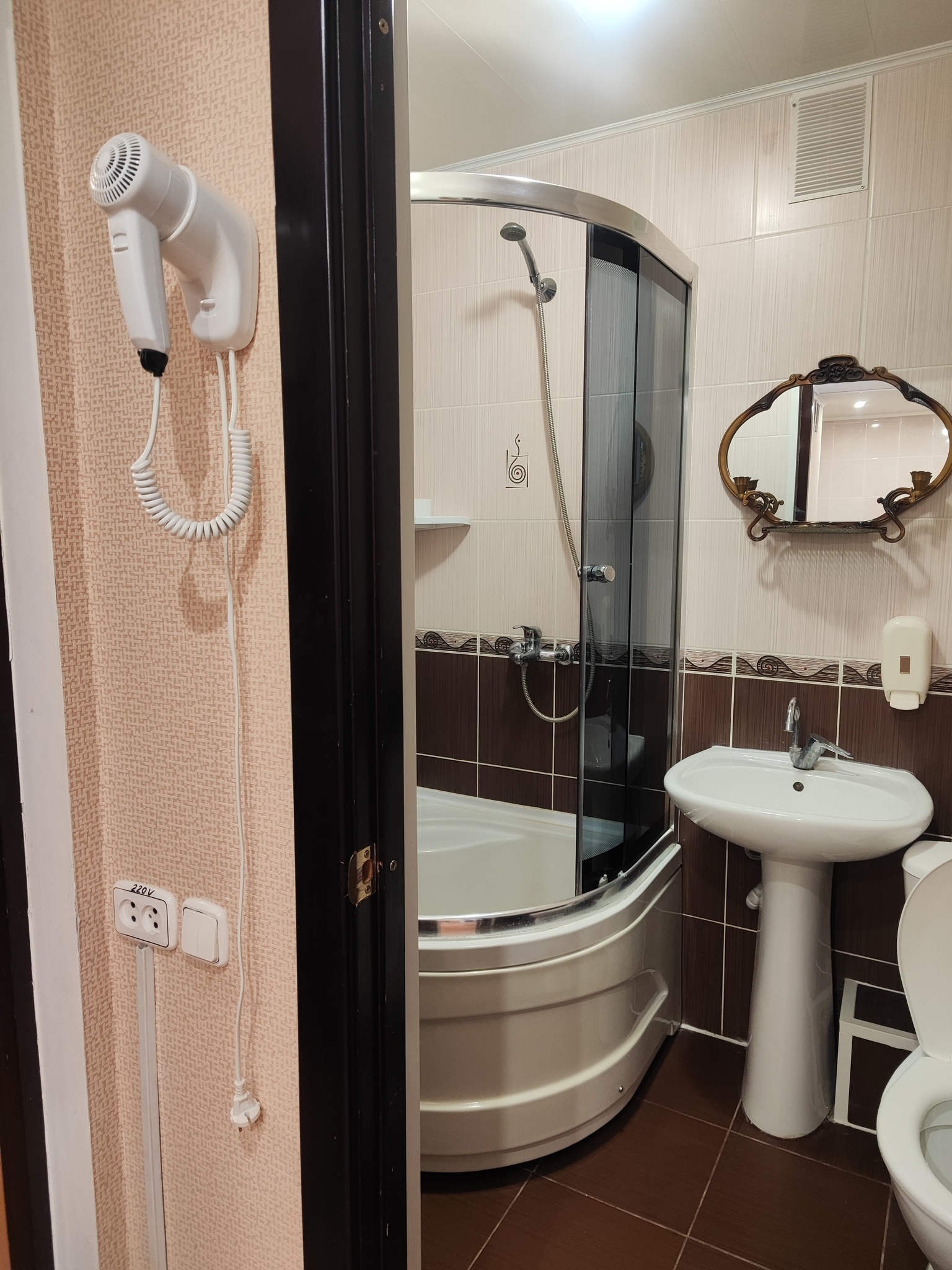 с душем: ; туалетные принадлежности: ; фен: ;