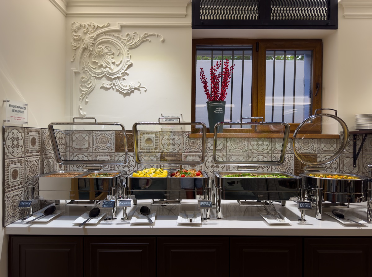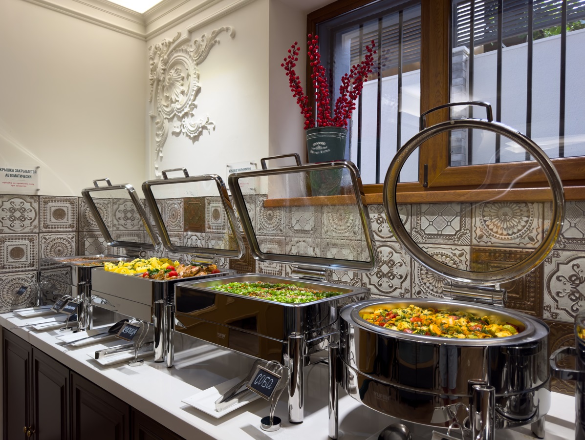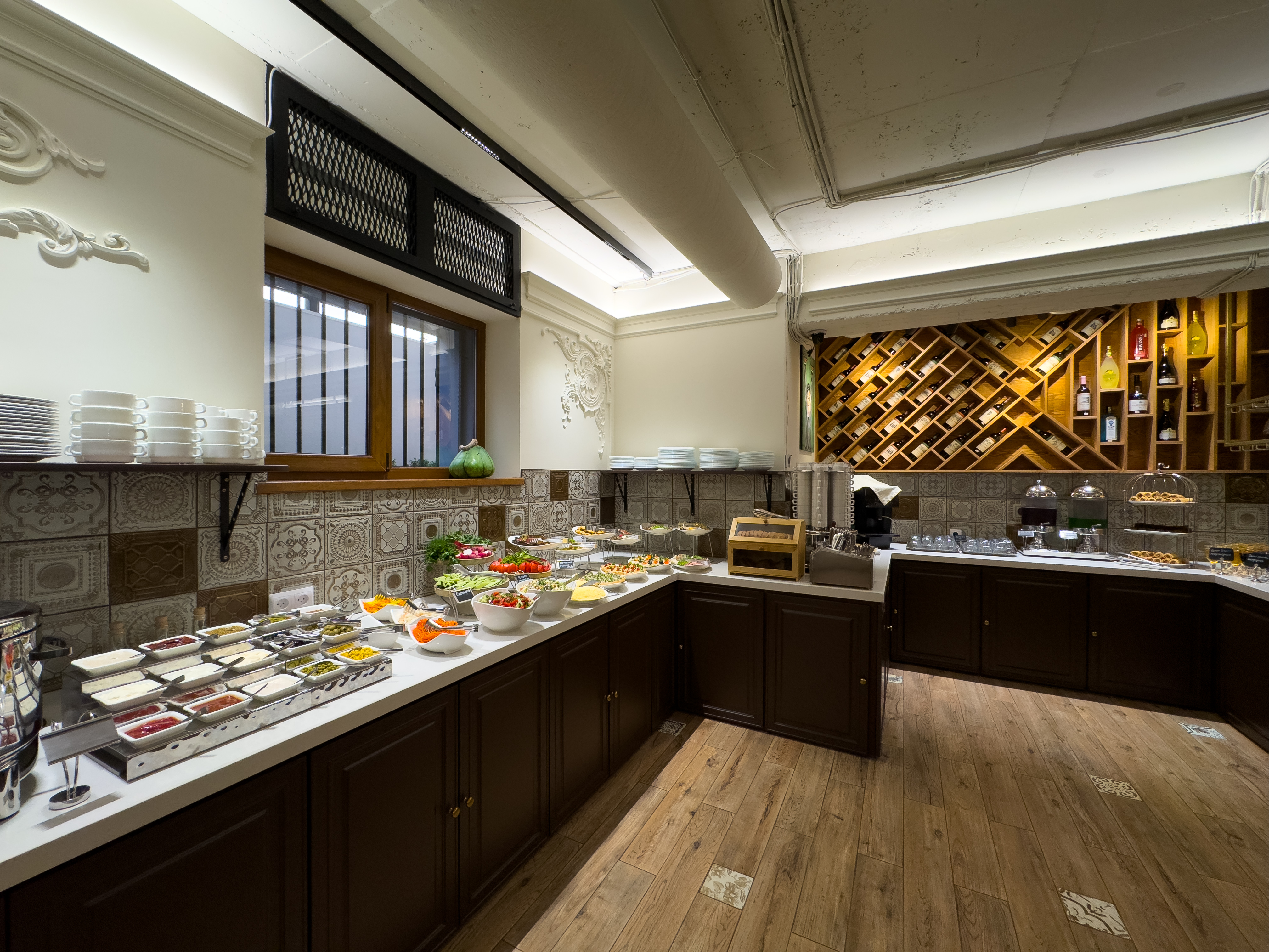 Позавтракать и поужинать по системе «шведский стол» можно в ресторане, расположенном в цокольном помещении отеля, а пообедать по сет-меню. Здесь, в уютной обстановке, можно насладиться вином и красивой живой музыкой.