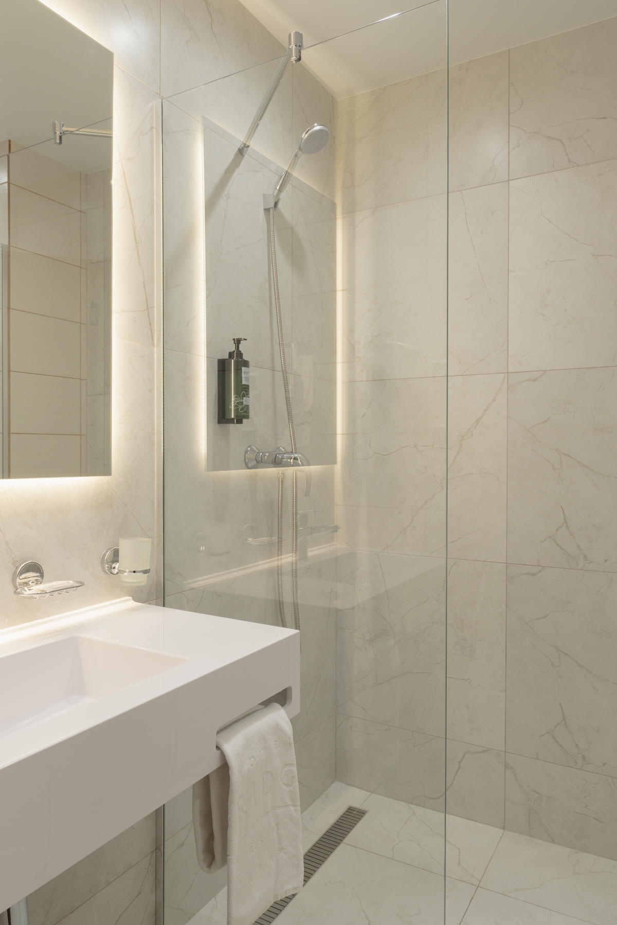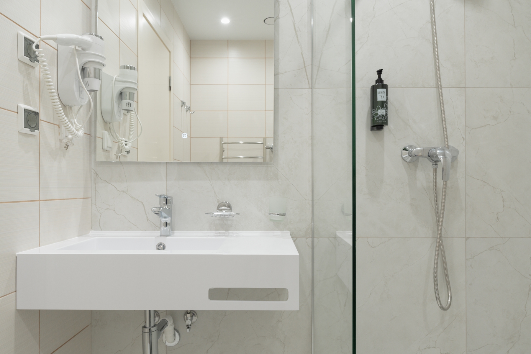 с душем: ; туалетные принадлежности: ; фен: ;