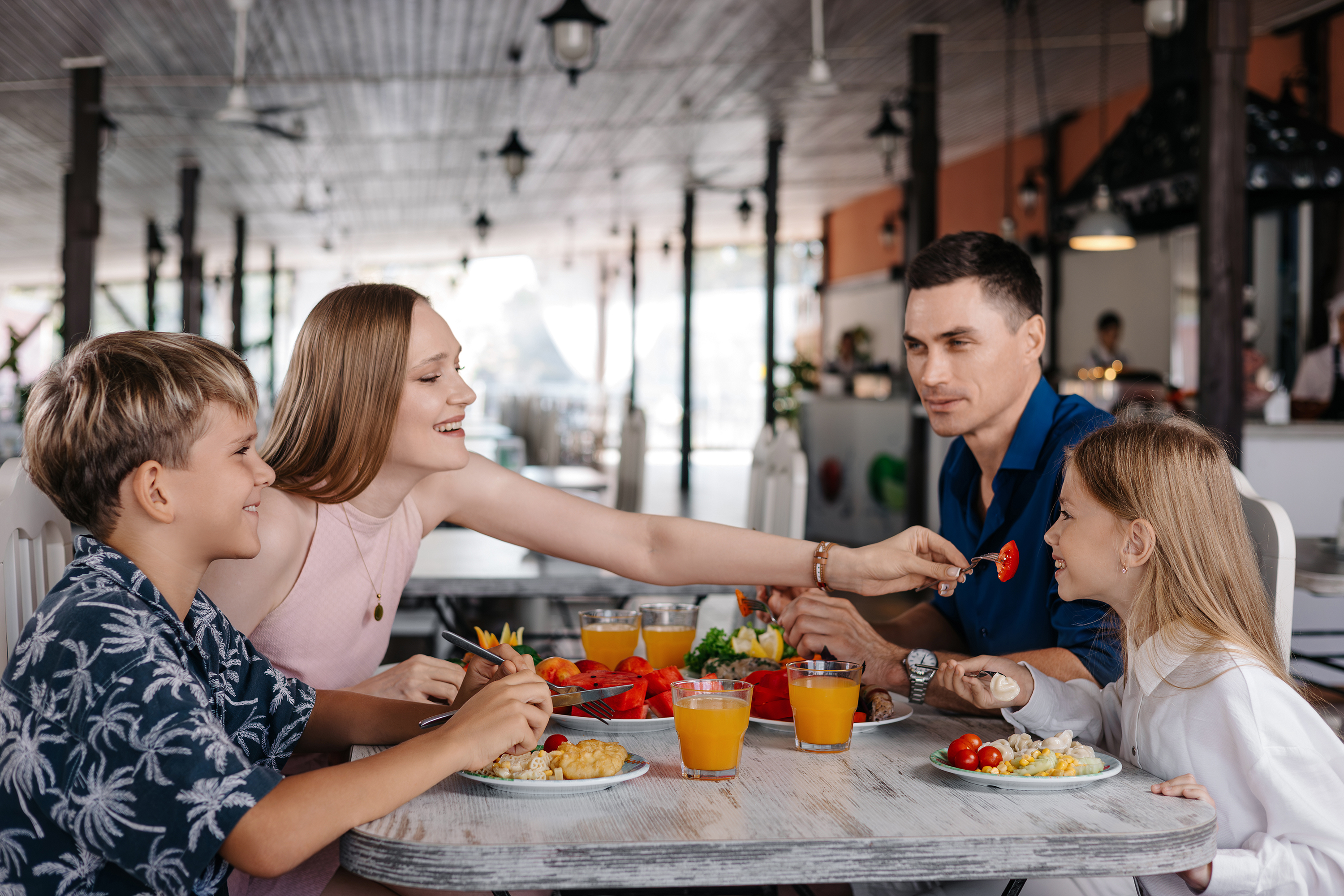 Питание по системе «шведский стол» организовано в основном ресторане. Отдельно предусмотрена diet-линия с низкокалорийным питанием и детская шведская линия. Для самых маленьких есть стульчики для кормления, микроволновая печь, подогреватель для бутылочек, блендеры и детское питание.