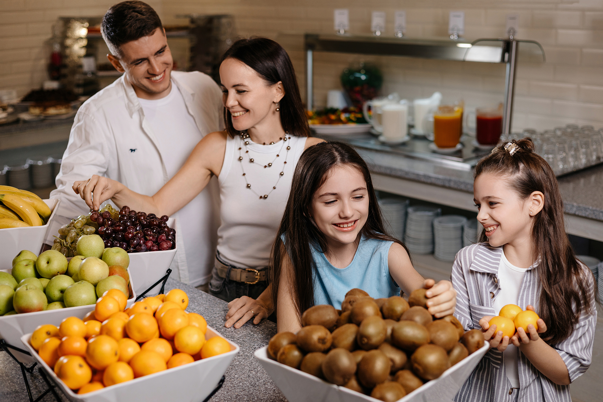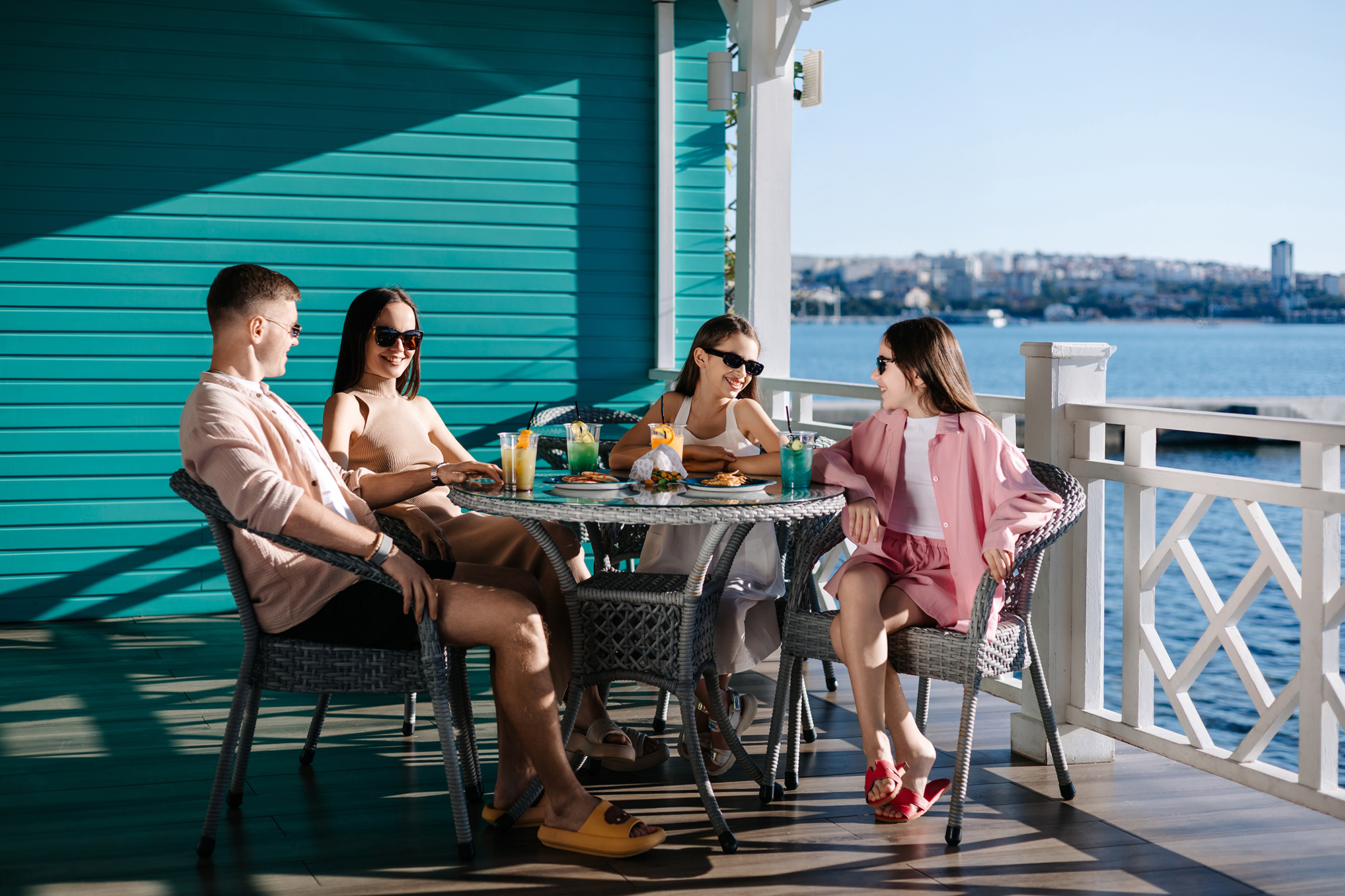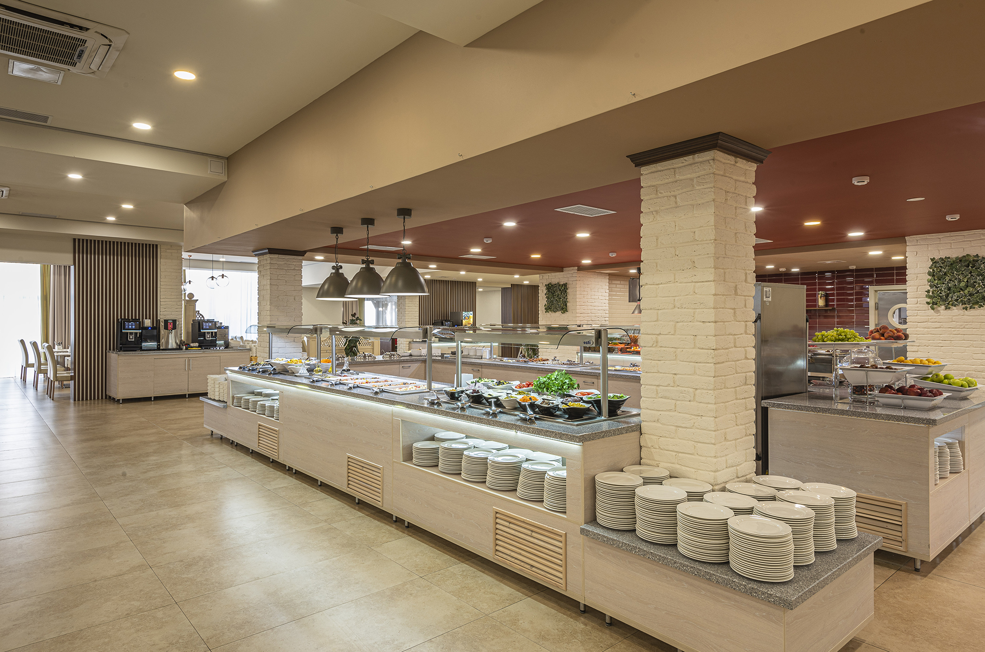 Система питания включает трехразовое питание в основном ресторане Biarritz по системе шведский стол и снек-бары, в том числе детское кафе «Карамелька», Бар у бассейна и снек-бар «Терраса». На завтрак, обед и ужин предлагается широкий выбор блюд в формате «шведский стол». Отдельно предусмотрена детская шведская линия и diet-меню. Малышам предоставляется баночное питание без ограничений, а для их кормления в основном ресторане есть детские стульчики, микроволновая печь, подогреватель для бутылок и блендеры.