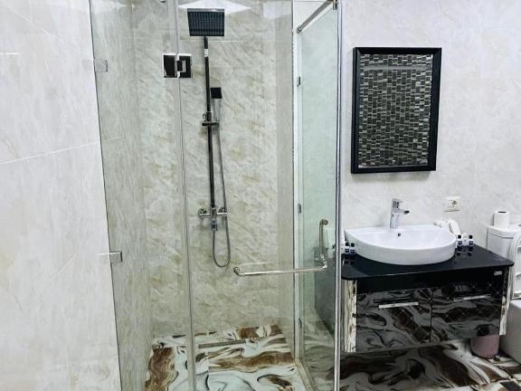с душевой кабиной: ; туалетные принадлежности: ; фен: ;